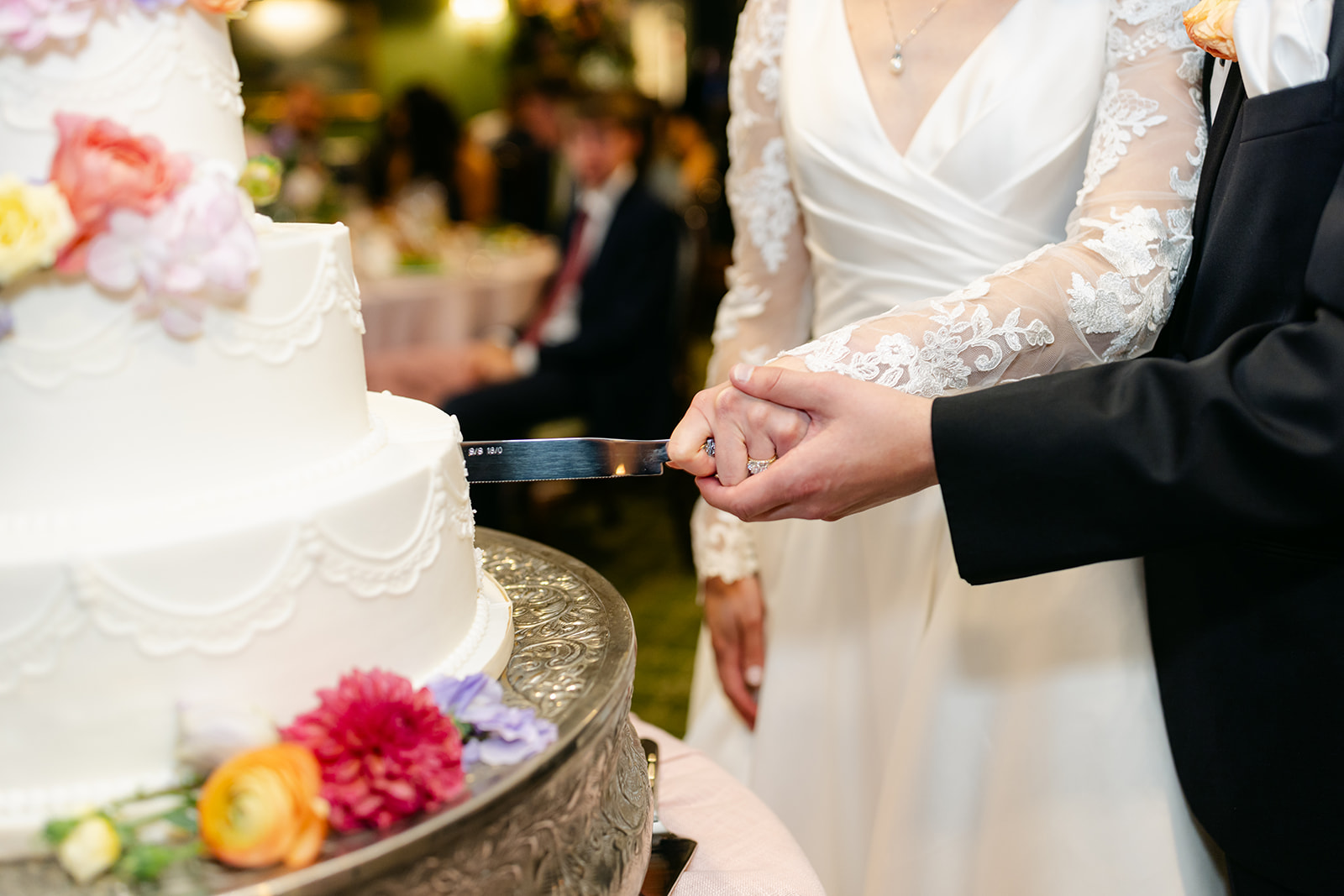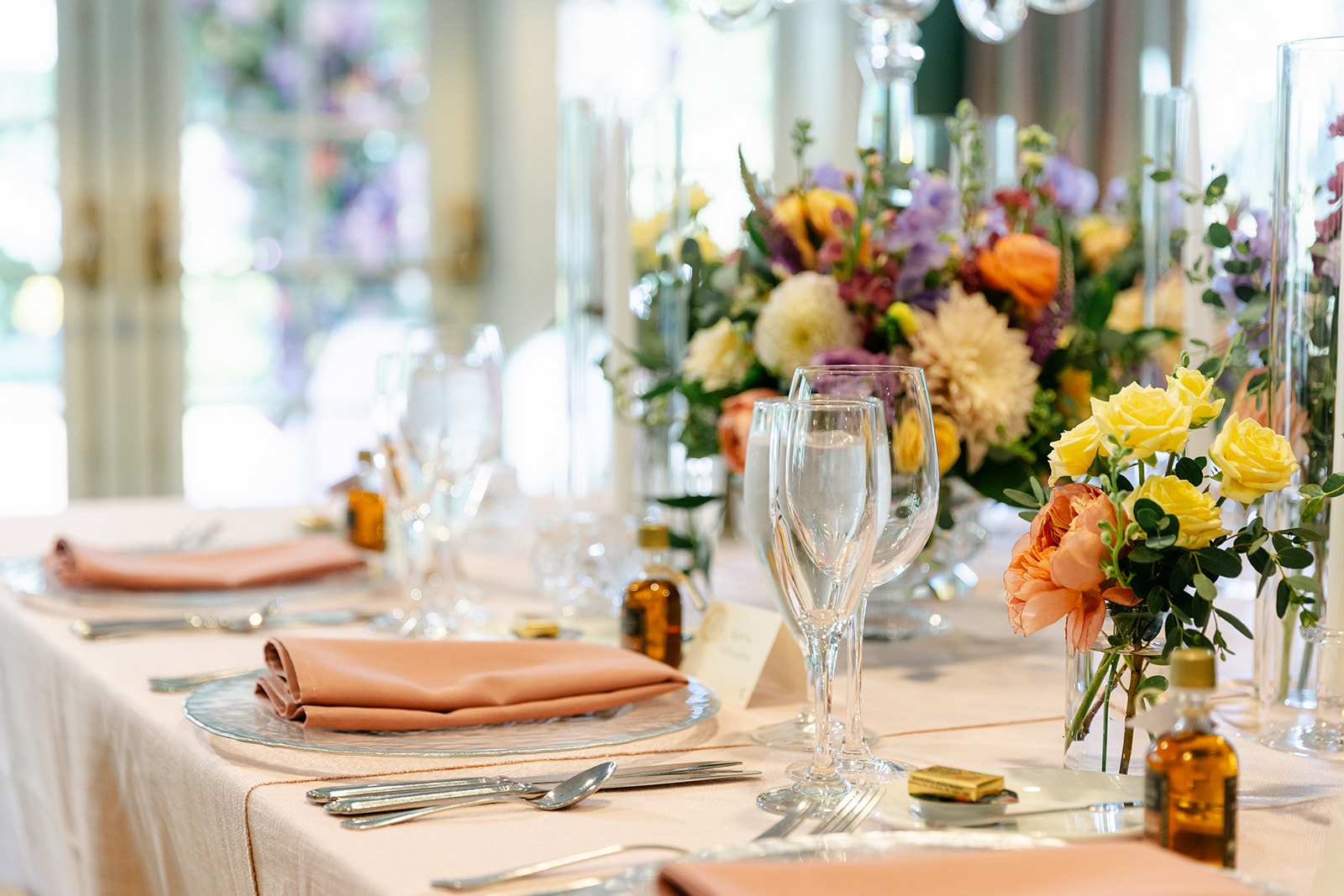 Afterward, we headed back to The Village Club for portraits in the garden. The fall light, the colors, and the quiet in-between moments made it the perfect backdrop. But the real jaw-dropper? The florals. Rebecca is a Viviano, so you already know Viviano delivered something epic. The flowers weren’t just décor—they matched Rebecca and James’ bright, vivid personalities and brought the whole celebration to life.