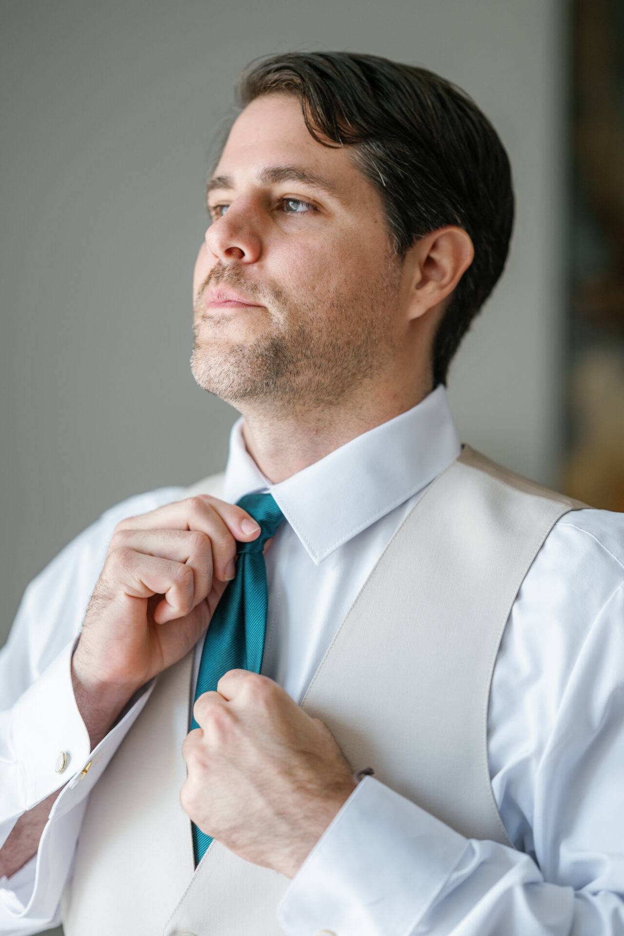 The morning started at the hotel with Sam and her bridesmaids getting ready upstairs while Niko and his groomsmen were just a floor below. The atmosphere was calm, and the fall weather outside was perfect.