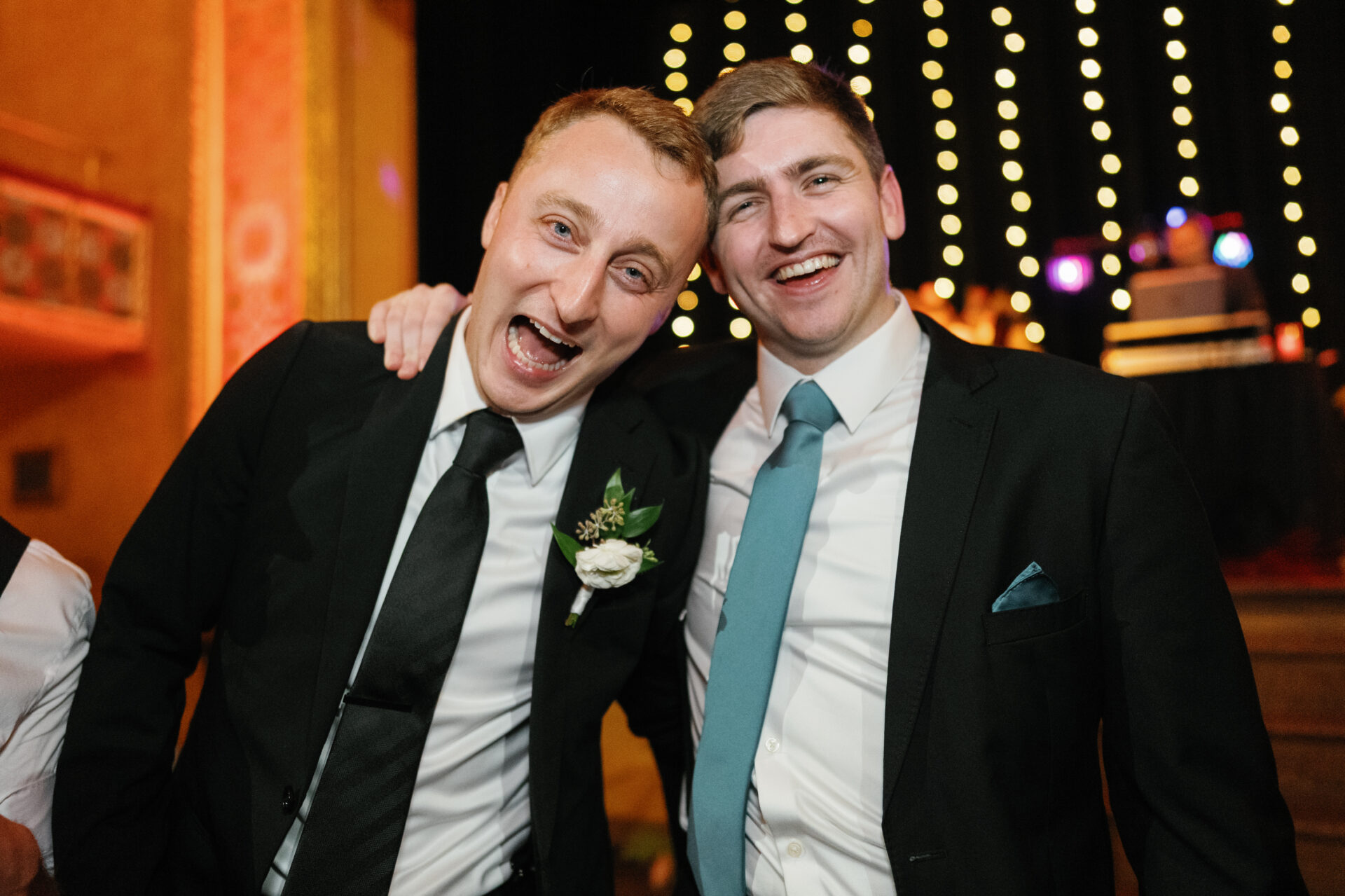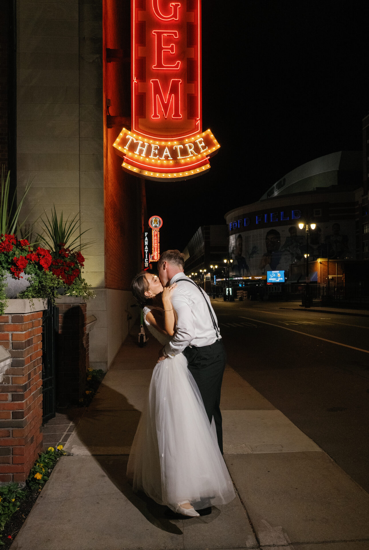 We met at the Gem for their first look, then walked a few blocks around Detroit for portraits. Their ceremony in the main theatre ended with Darcy and Reid practically running off the stage, full of excitement, before greeting guests during cocktail hour.