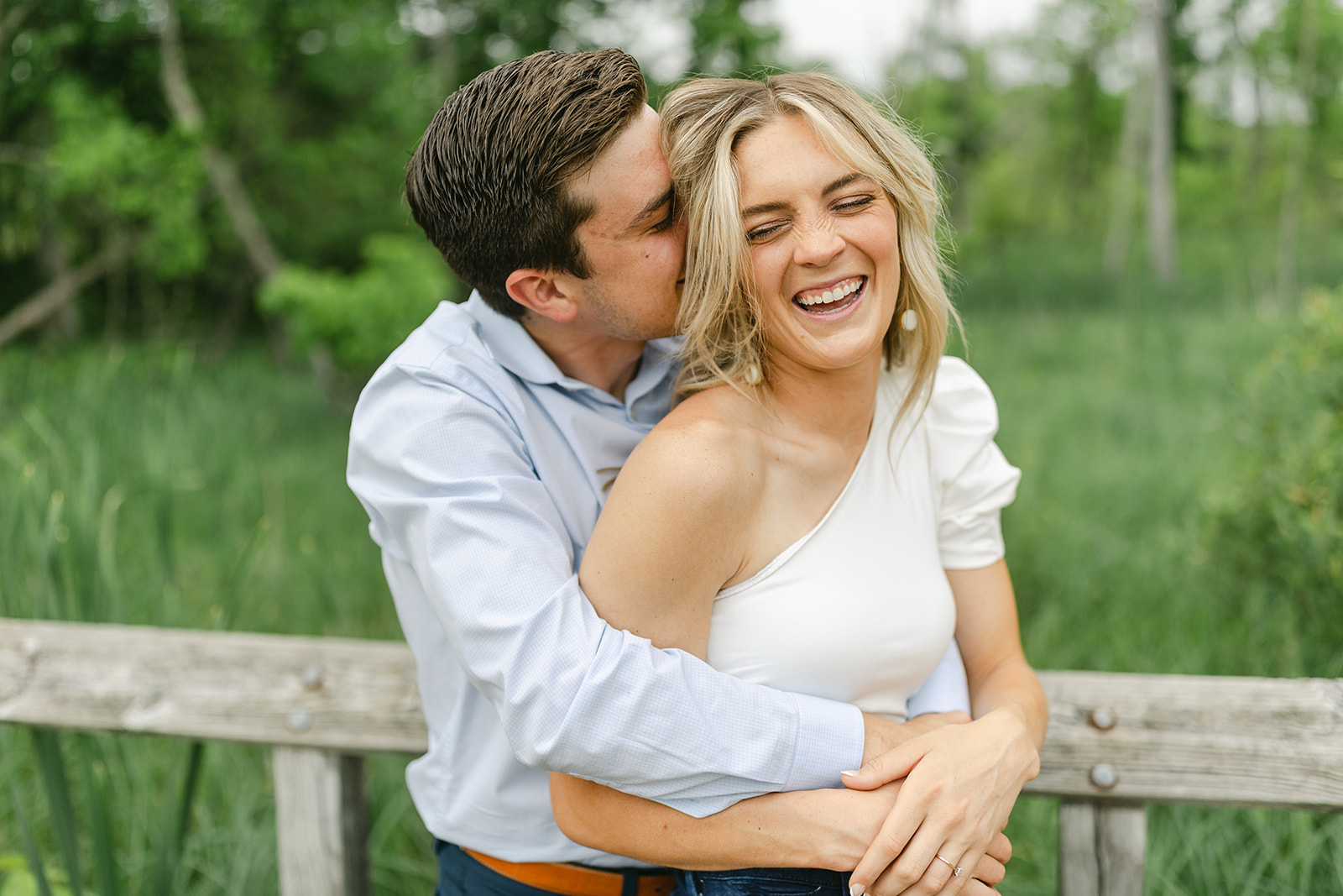 They wandered the trails hand in hand, laughing, tall grasses swaying in the breeze, a hidden clearing, or a patch of sunlight breaking through the trees. There were no stiff poses, just easy smiles and the comfort that comes from being with your best friend.