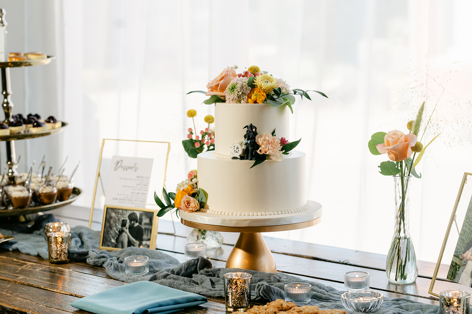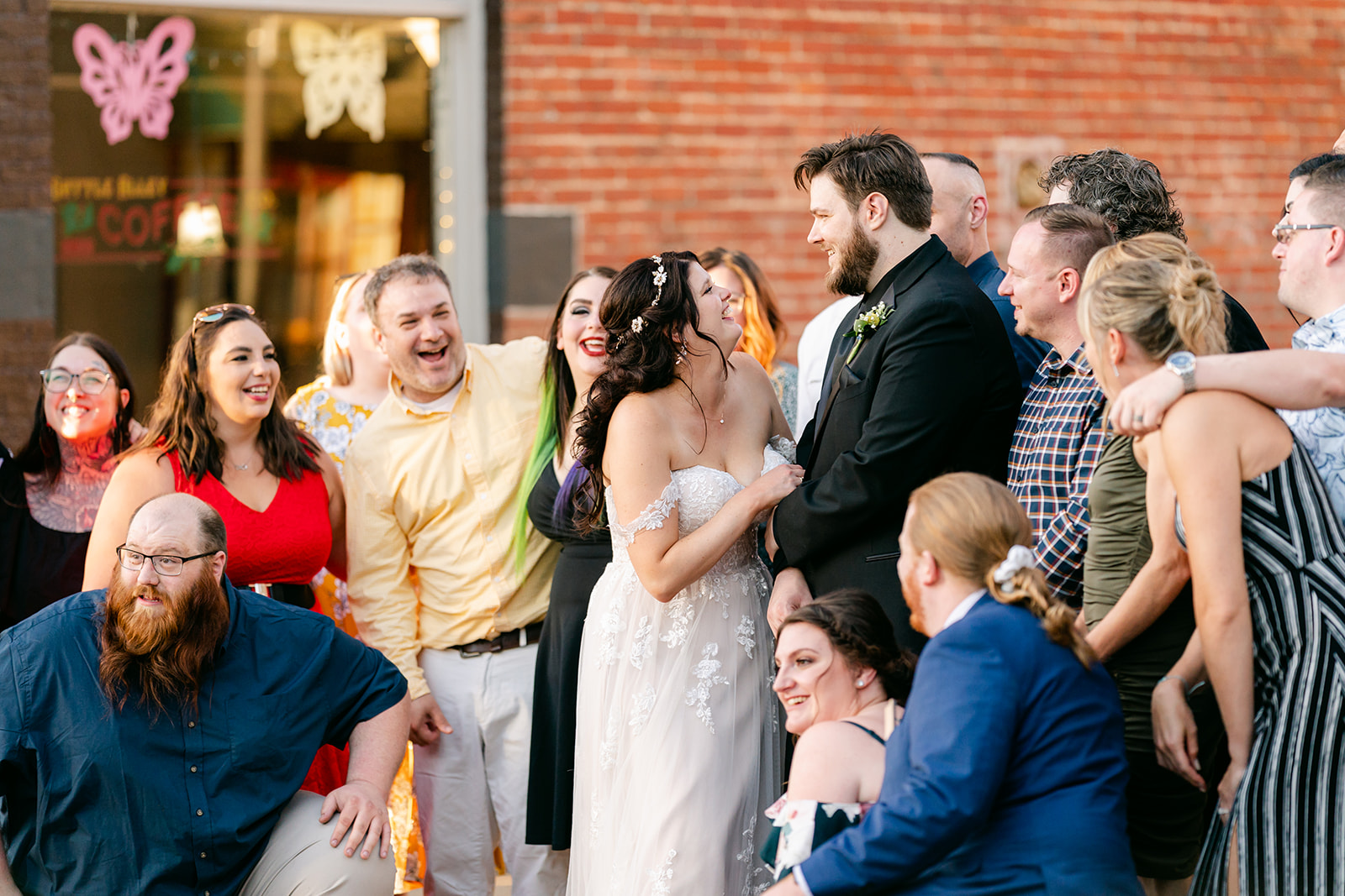 At the reception, guests were greeted with personal details and relaxed energy. The cake topper? A little replica of their dog. And instead of a big sendoff, Sarah and David took a quiet moment to sneak away for ice cream in downtown Holly, just the two of them, soaking it all in.