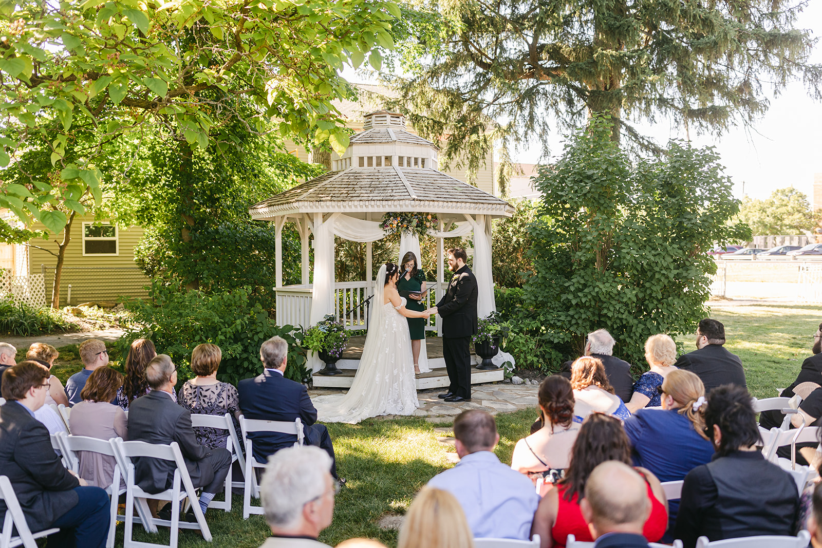 This wedding was intentionally small, no wedding party, just the people who mattered most. They gave thoughtful gifts to their parents and close family before the ceremony, and Sarah’s aunt officiated the heartfelt outdoor ceremony right across the street from the venue.