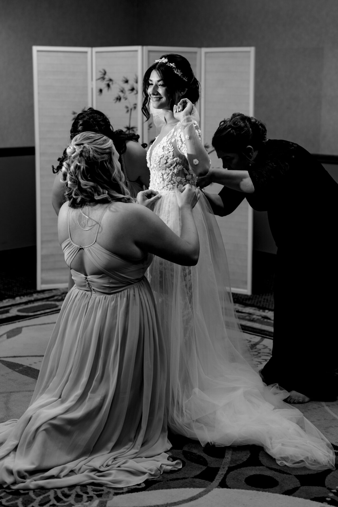 The ceremony was filled with happy tears and lots of love. Instead of leaving for portraits, we stayed on site so they could spend more time with their guests during cocktail hour. The space gave us plenty of spots for photos without missing a thing.