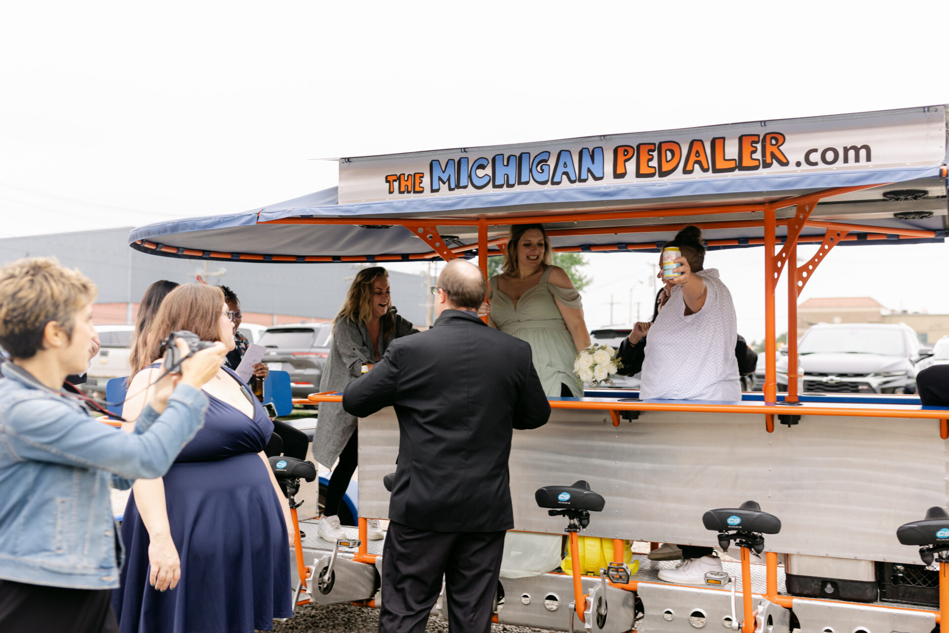 They got ready in downtown hotels and didn’t see each other until the ceremony. That first moment was emotional and so worth the wait. Marki had one surprise up her sleeve—she arrived in Jackson’s Detroit Police car, which was such a fun and personal touch.